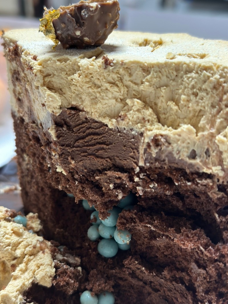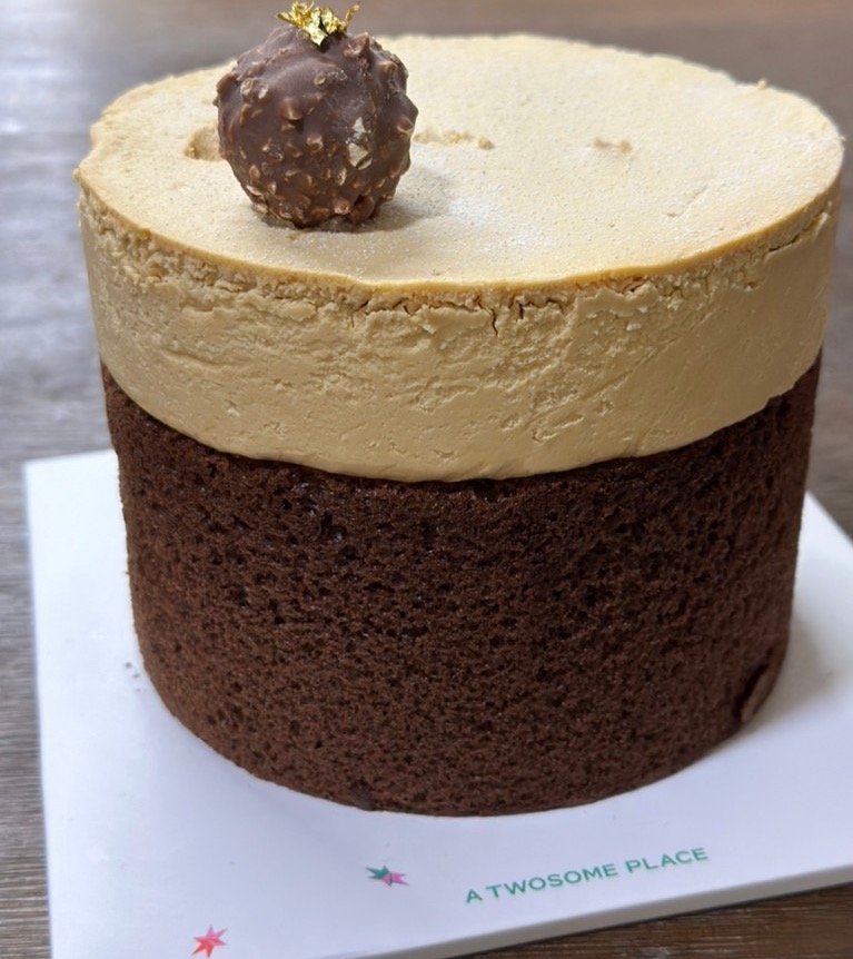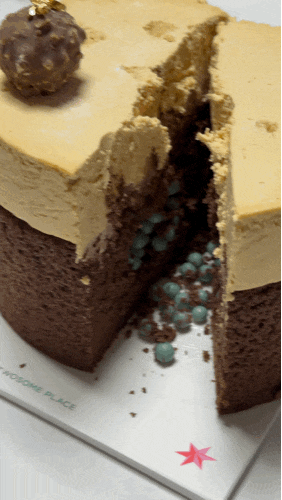 촉촉한 초코시트에 초콜릿 가나 슈와 캐러멜 크림으로 고급스러운 달콤함을 더하고 케이크 중앙에
