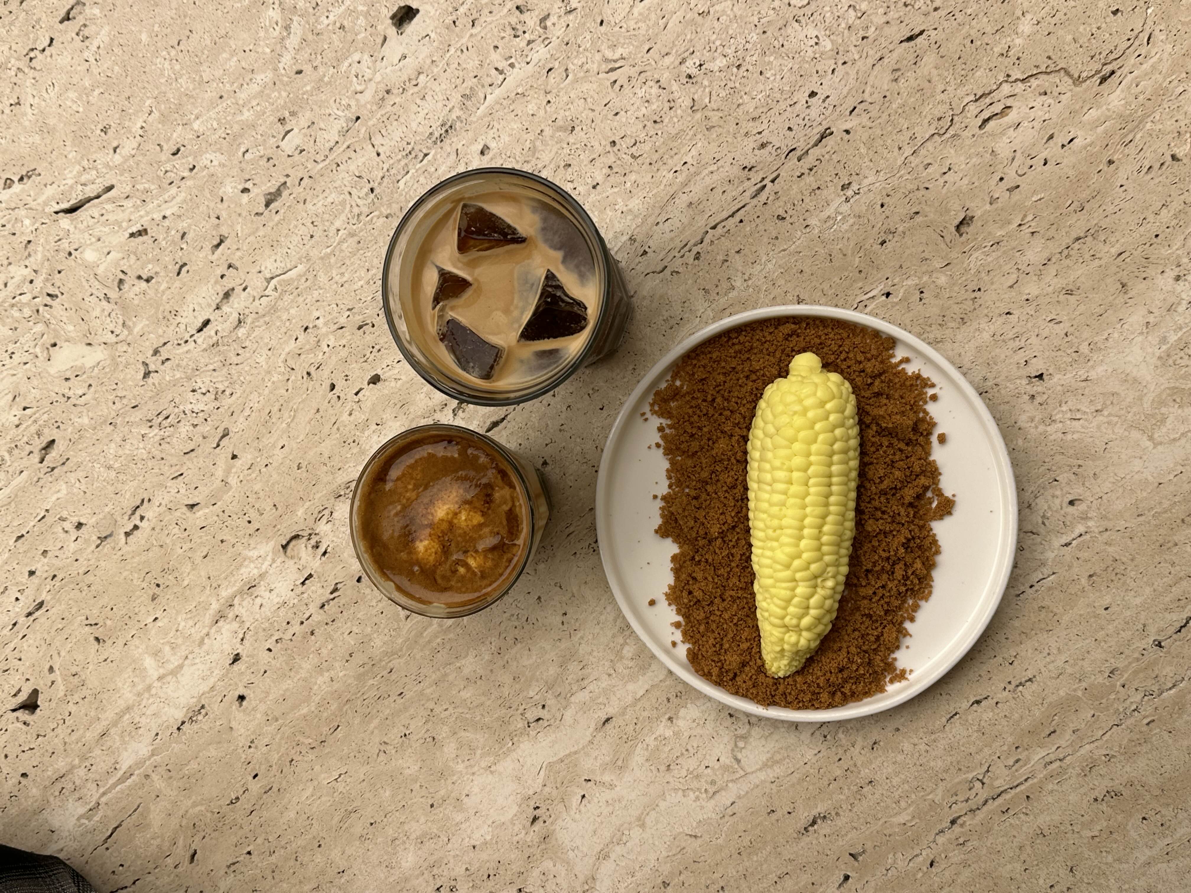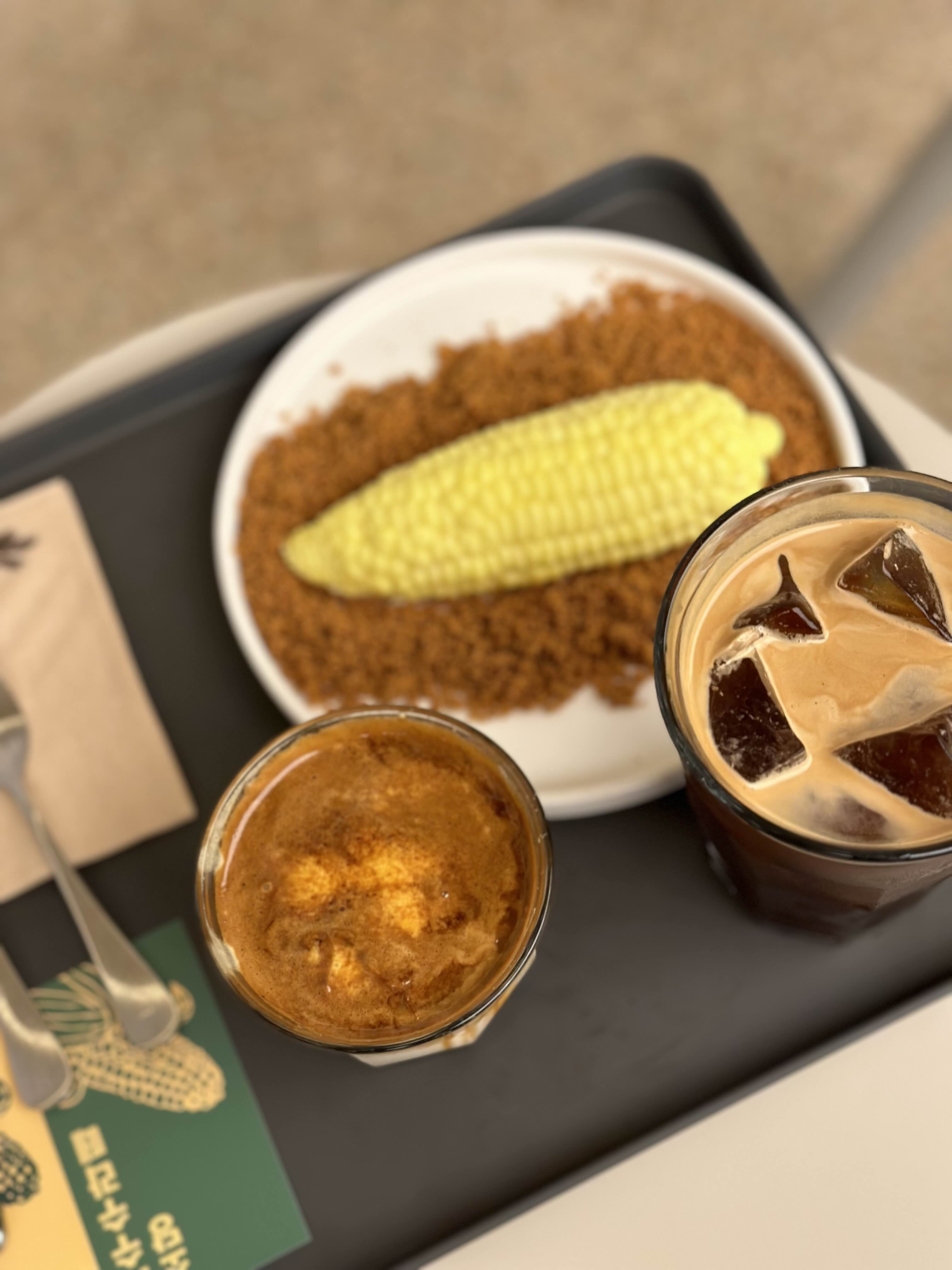 고소, 달콤한 초당옥수수크림과 에스프레소가 어우러진 시그니처 라테를 시켰어요