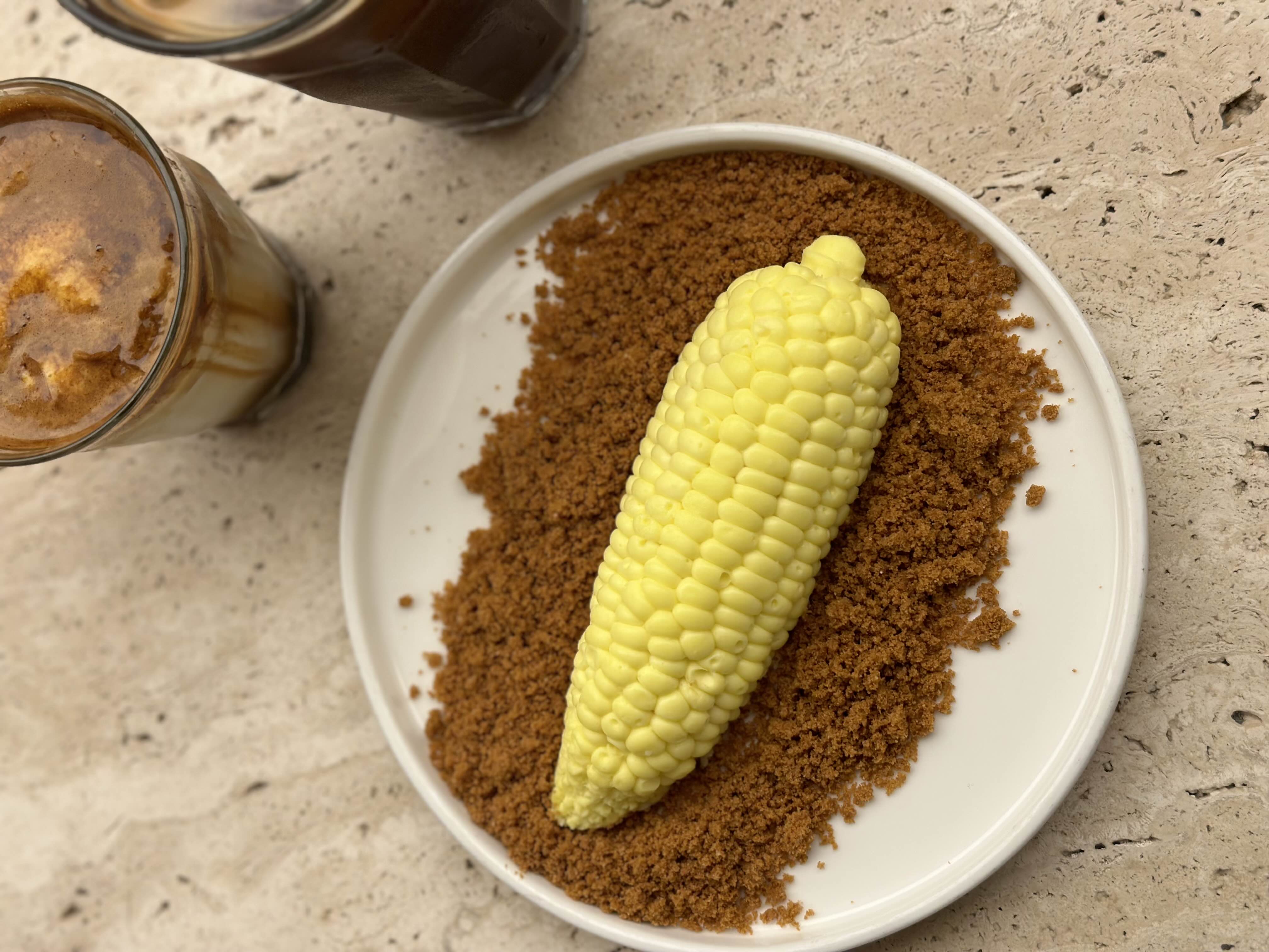 아래는 로투스 쿠키를 깔고 옥수수 아이스크림을 올린 맛이에요 거기에 부드러운 크림치즈와 조화를 이루고 있어요 가격도 나쁘지 않고 시그니처 메뉴여서 그런지 정말